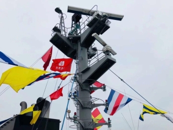 一艘悬挂着巴拿马国旗的由远东宏信投资的62000载重吨散货船“桐洋轮”(OCEAN PHOENIX TREE)满旗驶过新建的远东宏信广场门前,用桅顶的远东宏信司旗向总部致敬。