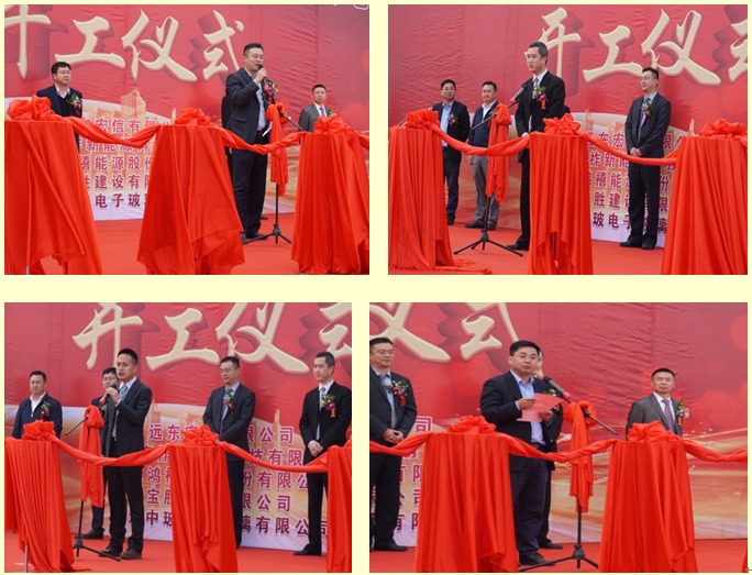 10月25日上午11:18吉时,庆典活动正式开始。首先由詹静为本次仪式致开场辞,他对前来参会的各单位领导和代表表示热烈欢迎,表达了此次项目的重要意义,对光伏产业的未来充满信心,并对宏祚新能源的发展致以衷心的祝福。紧接着,中玻集团财务总监韩黎明先生,宿迁工厂总经理刘胜利先生分别发表讲话,他们对于本次合作充满了希望,并表示在未来的合作道路上将一如既往的给予支持。最后由宏祚新能源总经理马宏先生致辞,他简要回顾了宏祚新能源的发展过程,期望宏祚新能源未来能与合作伙伴们同舟共济、共同携手开创美好的明天。