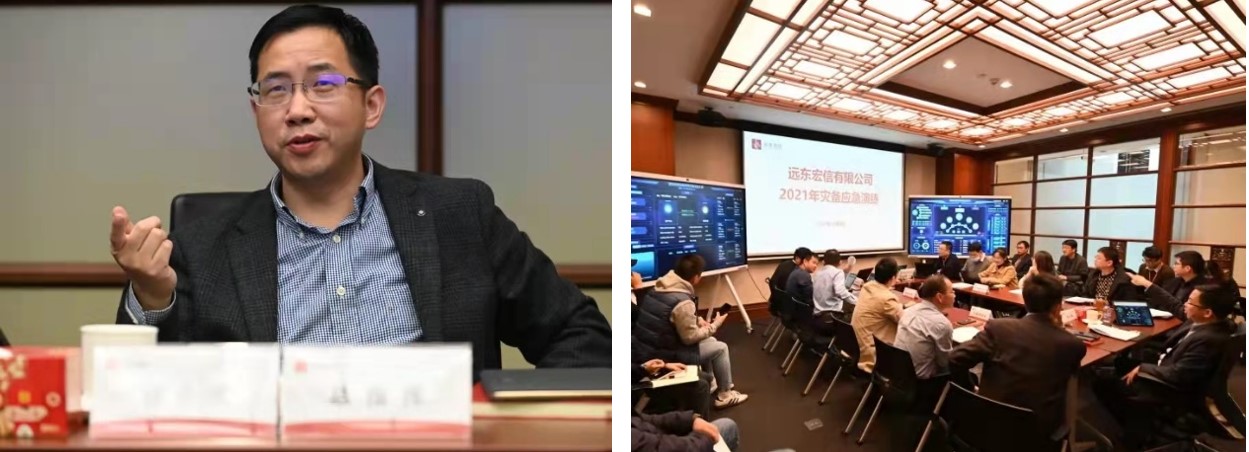 远东宏信也将重大安全风险防范工作机制推广至公司生产经营的其他环节。公司总裁助理徐会斌在2021年信息系统灾备应急演练中担任总指挥,该演练由50余名IT管理及技术人员、业务方代表参与,全面检验了公司信息系统灾难恢复能力及应急指挥体系有效性。