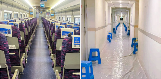 △ 一个人的高铁、隔离点的走廊